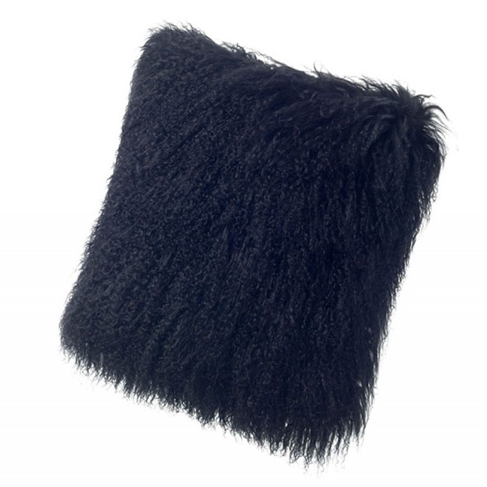 ふわふわの長毛がキュートな背あてクッション。ファスナー開閉式で中身を取り出せるようになっています。